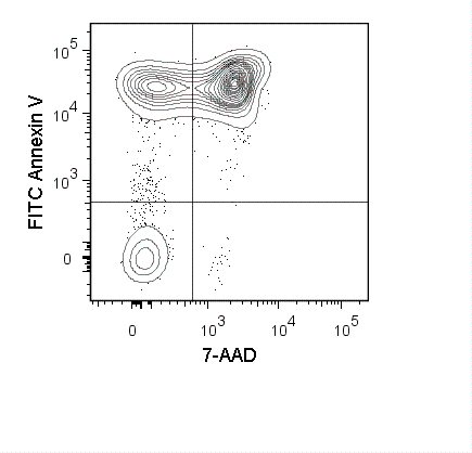 細胞凋亡檢測試劑盒 Cat.No.35-6410 Tonbo Biosciences FITC Annexin V Apoptosis Detection Kit with 7-AAD contains the reagents needed identify apoptotic or necrotic cells by flow cytometry.
